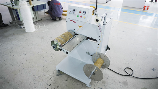 This machine mainly support twisted paper rope machine.This machine takes the paper rope roll produced from twisted paper ropemachine as the raw material, releases the roll on one shaft and twines it on the other shaft on the machine.This machine can not onlyenlarge thediameter of the paper rope roll, but also eliminate rope knots in the raw paper rope roll,so that the application efficieency ofpaper rope roll can be greatly improved in further productions.